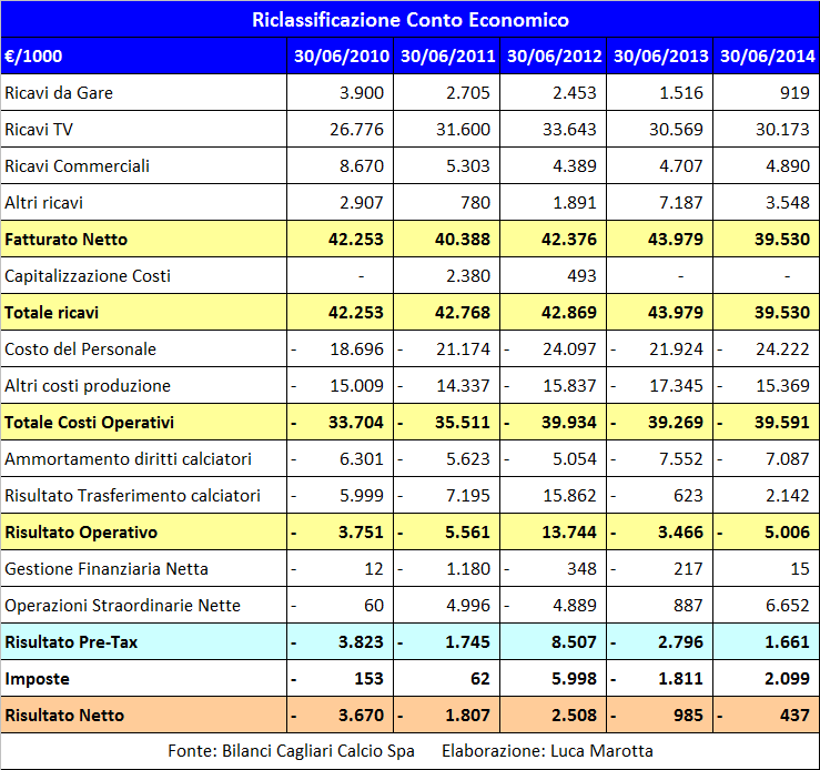 Il bilancio della società “Cagliari Calcio Spa”, al 30 giugno 2014, si è chiuso